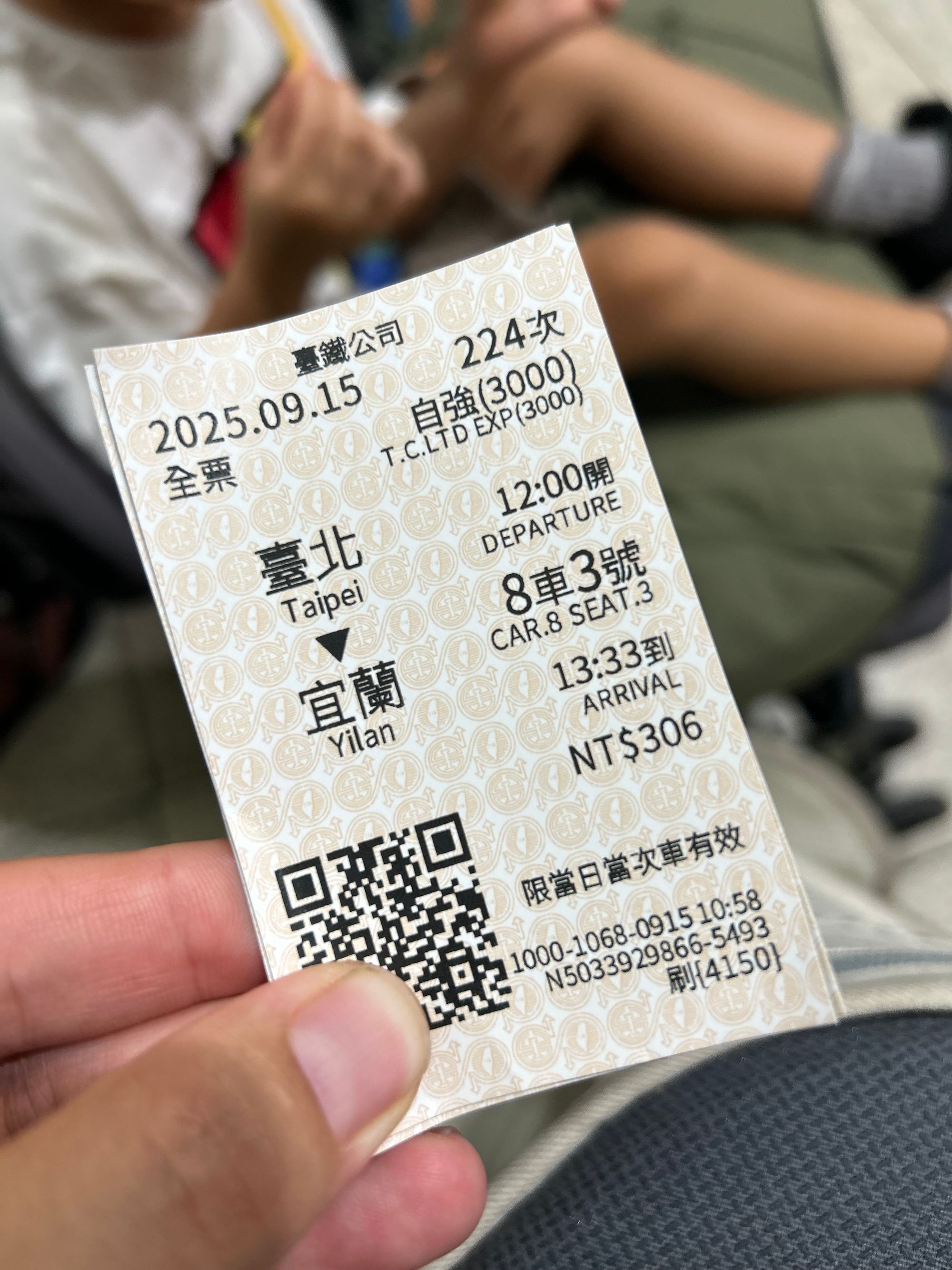 S taksijem smo se odpeljali do Taipei Train Station, zračne, pregledne in nefrekventne glavne železniške postaje, ki se nahaja tik ob glavni avtobusni postaji. Kupili smo tri enosmerne karte (cca. 7 EUR/karta) do Yilana s hitrim in udobnim vlakom, ki nas je na želeno destinacijo pripeljal v dobri uri.