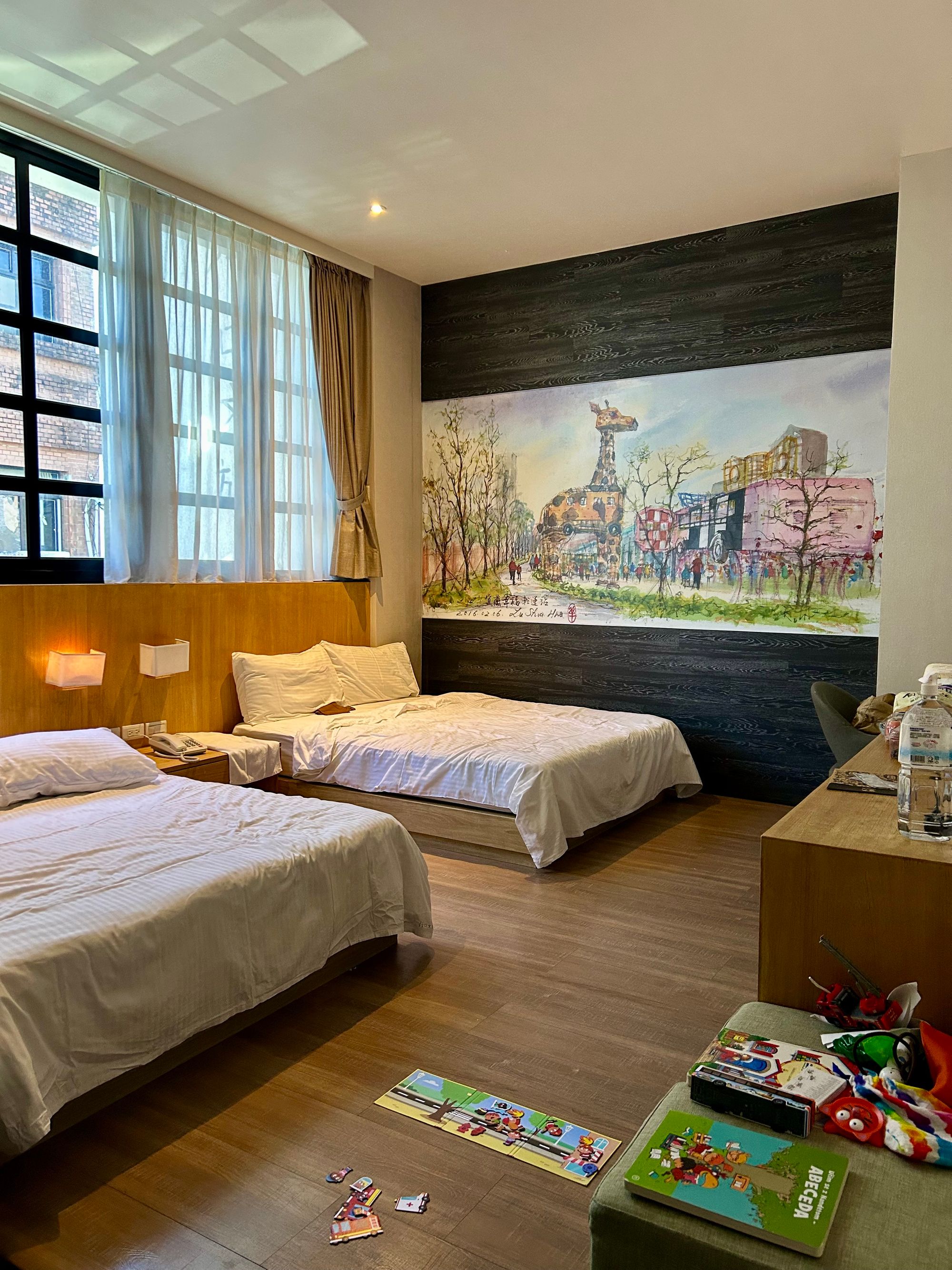Taksi nas je odpeljal do železniške postaje, naša naslednja postaja je bilo mesto Taitung, oddaljeno dve uri vožnje. Okrožje Taitung se nahaja ob delti reke Beinan, na južnem koncu doline, znano je po svojih značilnih lokalnih izdelkih, od vrhunskega riža, dnevnih lilij, hibiskusa in sladkornih jabolk do jadrnic in morskih specialitet. Zaradi naravnih čarov si je mesto Taitung prislužilo vzdevek "vrt Tajvana". Na vlaku sva ugotovila, da naslednja planirana destinacija Hengchun, na čistem J Tajvana nima direktne prometne povezave, zato sva se odločila, da obisk Taitunga podaljšamo za dva dni. Odločitev je bila pravilna, prebivamo namreč v Rice Resort Hotelu https://www.rice-hotel.com/en/, družinskem hotelu, ki ponuja vse od sob, opremljenih po meri otrok, do bazena, gokart steze, dveh ogromnih igralnic idr. Otroka se ne pritožujeta, midva tudi ne, za kosilo je poskrbel Uber Eats in pica, popoldne pa smo preživeli v raziskovanju ogromne hotelske igralnice.