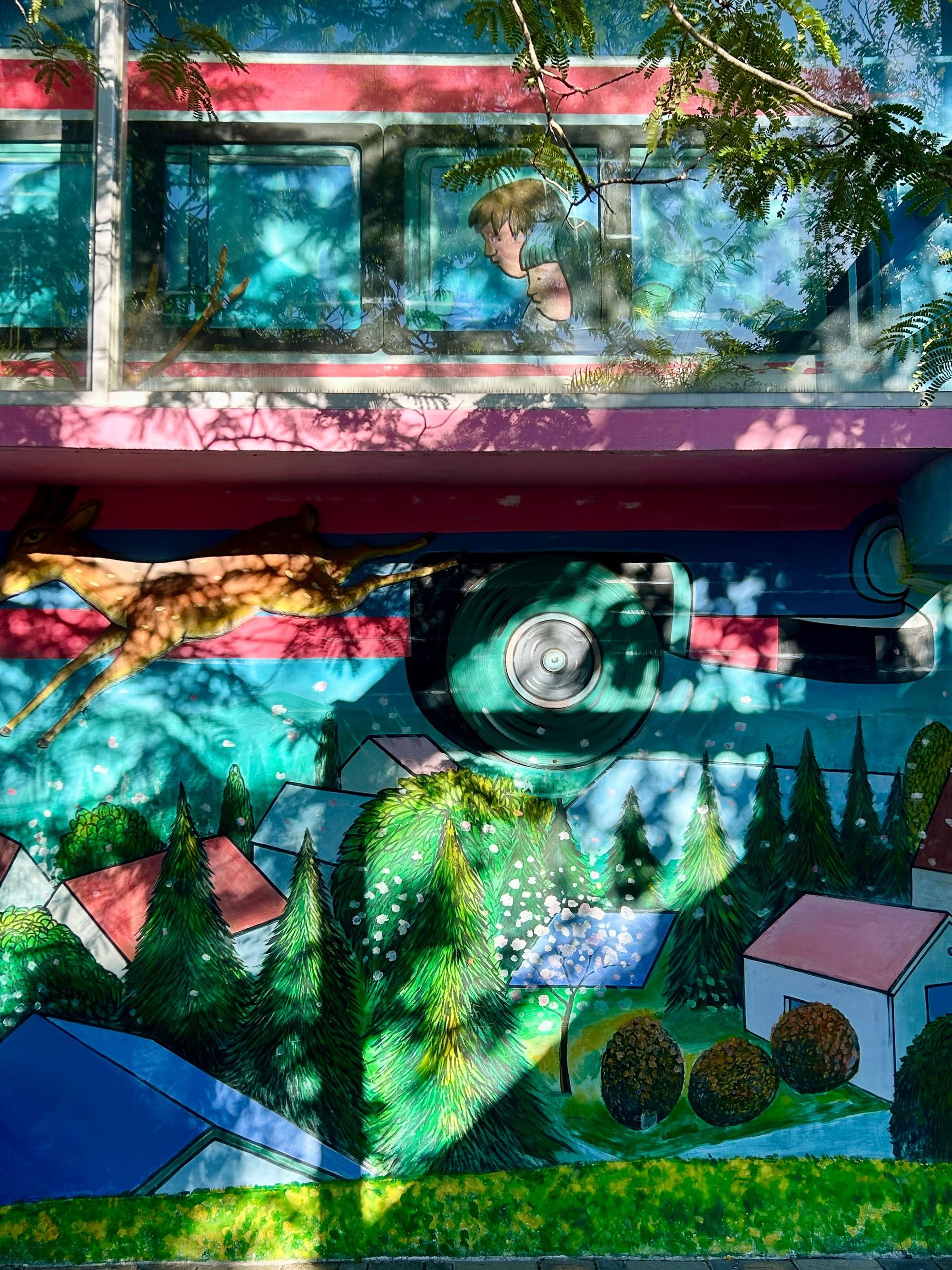 Mesto deluje, kot da smo edini turisti, je majhno, obvladljivo, posebne vrste doživetje pa predstavlja obisk lokalne tržnice Yilan Traditional Market, ki ponuja široko paleto izdelkov, od lokalnih prigrizkov do morskih sadežev in ribjih izdelkov. Nekaj azijskih tržnic sva že obiskala, vendar nama je ta, zaradi ljudi, pustila izjemno domač občutek. Opazovali smo udomačenega pujsa, mojstra lupljenja sadja, pripravo domačih slaščic, prodajalce dragih kamnov, oblek, mikrofonov idr. in resnično nikjer se ne počutimo bolj živo kot v tuji državi, kjer se lahko potopimo v drug svet in kulturo z vsemi čuti. Sprehajali smo se po mestu in pred počitkom odvili še v Yilan Museum of Art https://museums.moc.gov.tw/EN/MusData/Detail?museumsId=673cbb65-ad09-400f-b304-58e1ddd1925d, ki predstavlja lokalno umetnost in obrt, zaradi česar je odličen kraj za spoznavanje zgodovine Yilana. Ogledali smo si razstavo tajvanskega umetnika Ming Chang Tien-a v kateri sta fanta prav nenavadno sodelovala in zamaknjeno opazovala film o umetnikovem čiščenju starega igrišča ob hiši v kateri se je rodil.