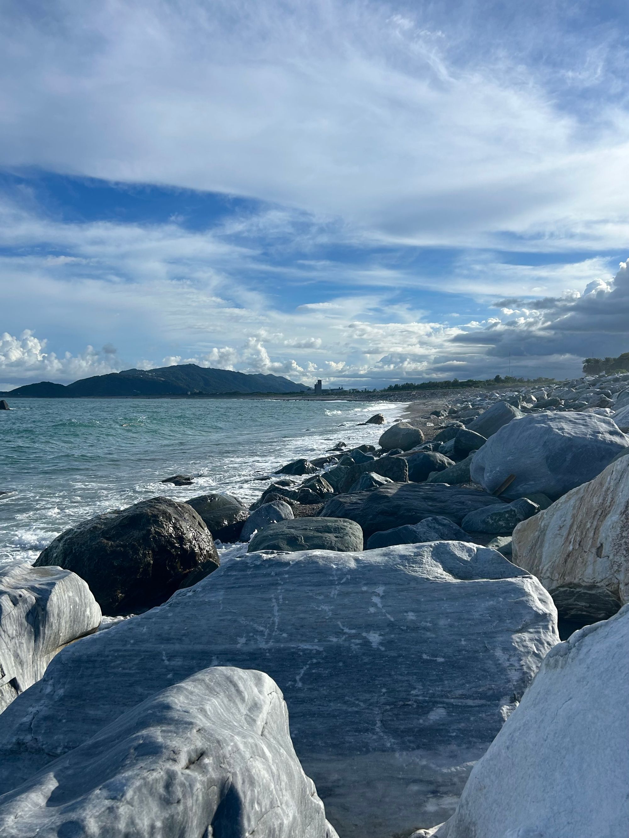 Krasna stvar manjših hotelov/penzionov, B&B-jev, je da nastanitev vključuje zajtrk, ki pa ni samopostrežni in tako so zajtrki vedno zanimiva presenečenja. Naslednje jutro smo dobili koruzno juho, dve vrsti kuhanega krompirja, kuhan brokoli, košček jabolka, pasijonke, pomaranče, narezano trdo kuhano jajce, kuhano bučo in klobasico. Začuda so okusi štimali in dan se je začel obetavno. Po zajtrku smo želeli srečo s kopanjem preizkusiti na Qixingtan plaži https://tour-hualien.hl.gov.tw/en/TourContent.aspx?n=186&s=1530, skalnati prodnati plaži v obliki polmeseca, znani po slikoviti pokrajini, čisti vodi in osupljivih razgledih na okoliške gore. Je priljubljena točka za fotografe in ljubitelje narave, območje se namreč ponaša s pešpotjo in 21 km dolgo kolesarsko stezo, ki ponuja edinstvene razglede na bližnje znamenitosti, kot sta park Nanbin in muzej kamnitih skulptur Hualien. Po obisku plaže smo se na hitro ustavili še na dnevni tržnici, popoldne pa nam je postreglo z odličnim kosilom v Bunny Kitchen in sprehodom po tržnici.