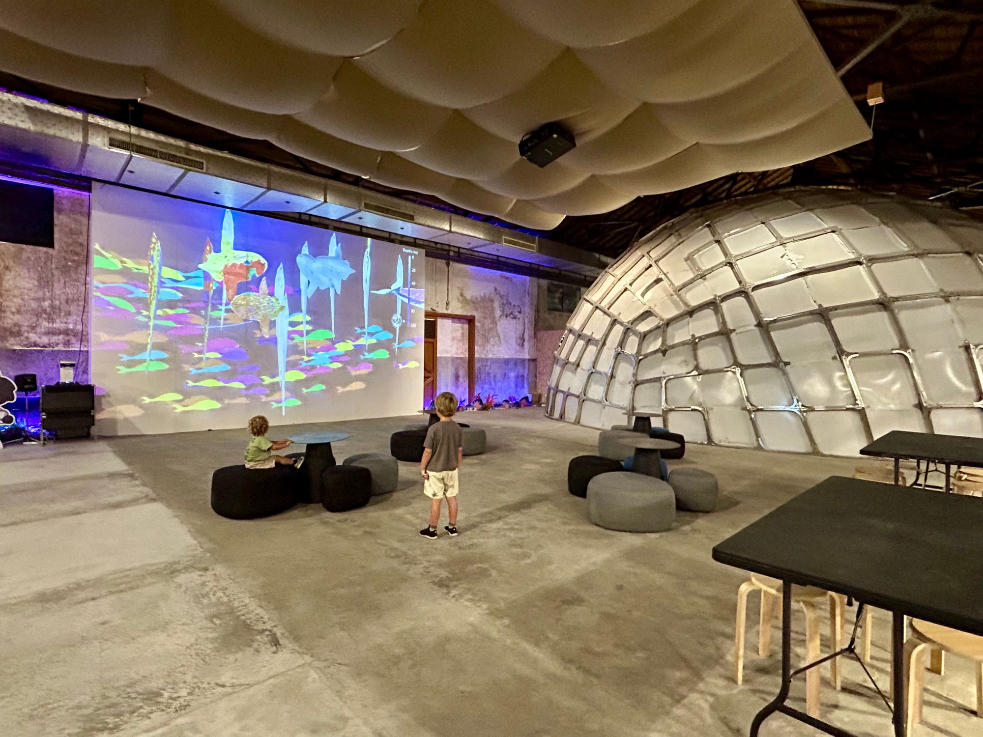 Popotovanje po Tajvanu sem zastavila nekoliko prenapeto, glede na dosedanje izkušnje, bi v vsakem kraju morala ostati najmanj dan ali dva dlje. Na dan odhoda v Hualienu smo tako obiskali še Cultural Creative Industries Park https://tour-hualien.hl.gov.tw/en/TourContent.aspx?n=169&s=3369, nekoč vinsko tovarno, po obnovi je bil leta 2011 odprto za javnost in danes kraj, kjer lahko uživate v razstavah, koncertih in drugih predstavah. Odprte so bile štiri stavbe, obiskali smo eno, kjer smo uživali v interaktivnih igrah, udeležili pa smo se tudi učenja diska v Dance Dome Revolution. Umetna manjša kupola je namenjena izključno 15-minutnemu norenju in plesu, pri čemer ti z gibi pomaga animacija in ker smo se tako navdušeno vrgli v učenje, se je razplesal tudi animator.