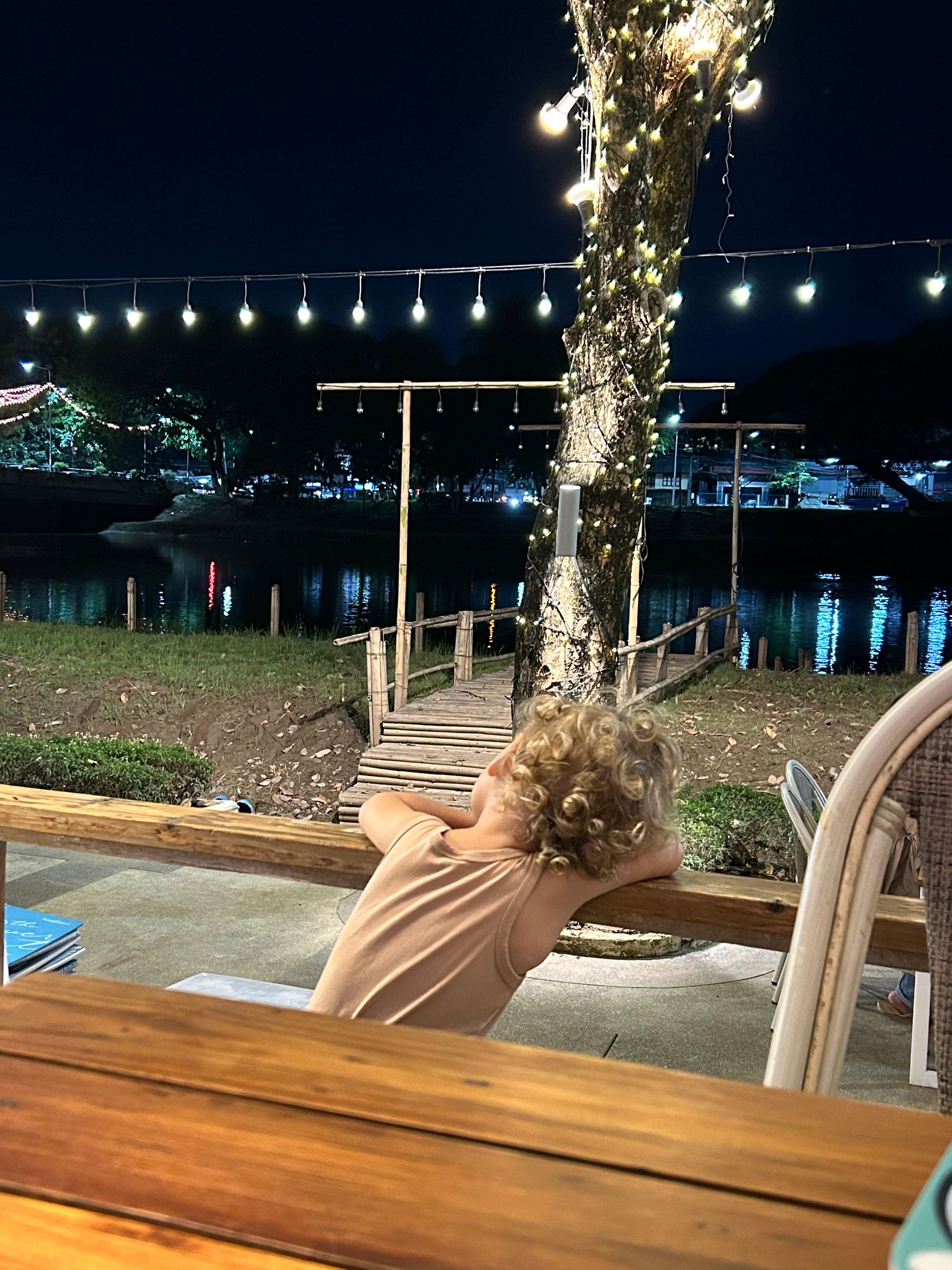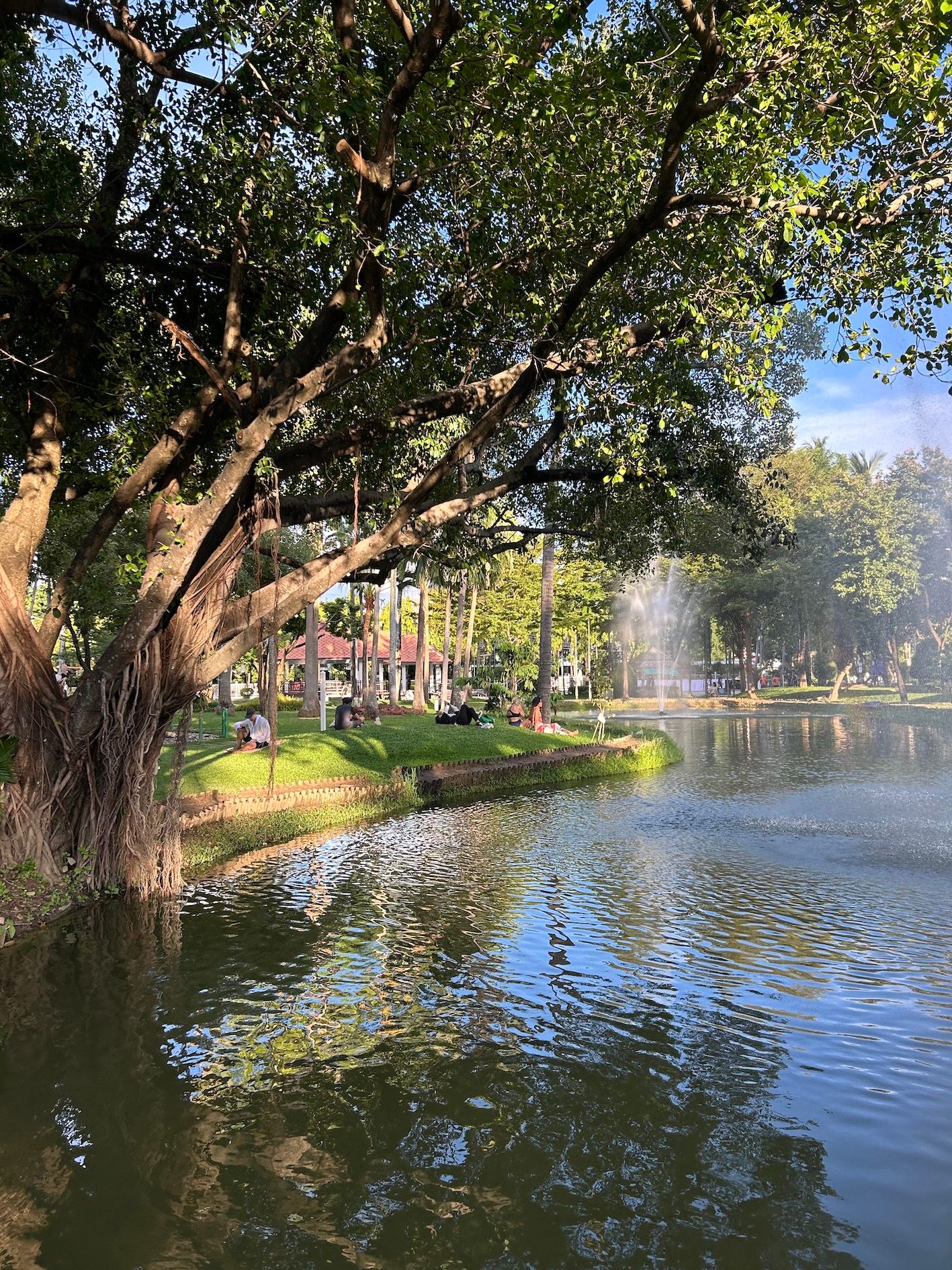 V hotelu so nam uredili pranje, sušenje in likanje oblačil za 100 bahtov/kg, kar je bila prijetna sprememba od razvozlavanja vseh 1000 pralnih strojev, ki smo jih uporabili na poti do današnjega dne. Četrtkovo popoldne smo preživeli na kosilu v Indian Bites, vrhunski indijski restavraciji https://wanderlog.com/place/details/6585728/indian-bites-cafe--vegetarian-and-vegan-restaurant in parku Nong Buakhad, ki sva ga z Mitjo obiskovala sedem let nazaj https://mychiangmaitour.com/nong_buakhad_park/. Park se ni dosti spremenil, še vedno gosti domačine v lahnem drncu, otroke, ki se zabavajo na igralih, skupinske zumba vadbe za domačine in tujce in tujce, ki vadijo akro jogo ter tiste, ki potrebujejo malce popotniškega počitka.