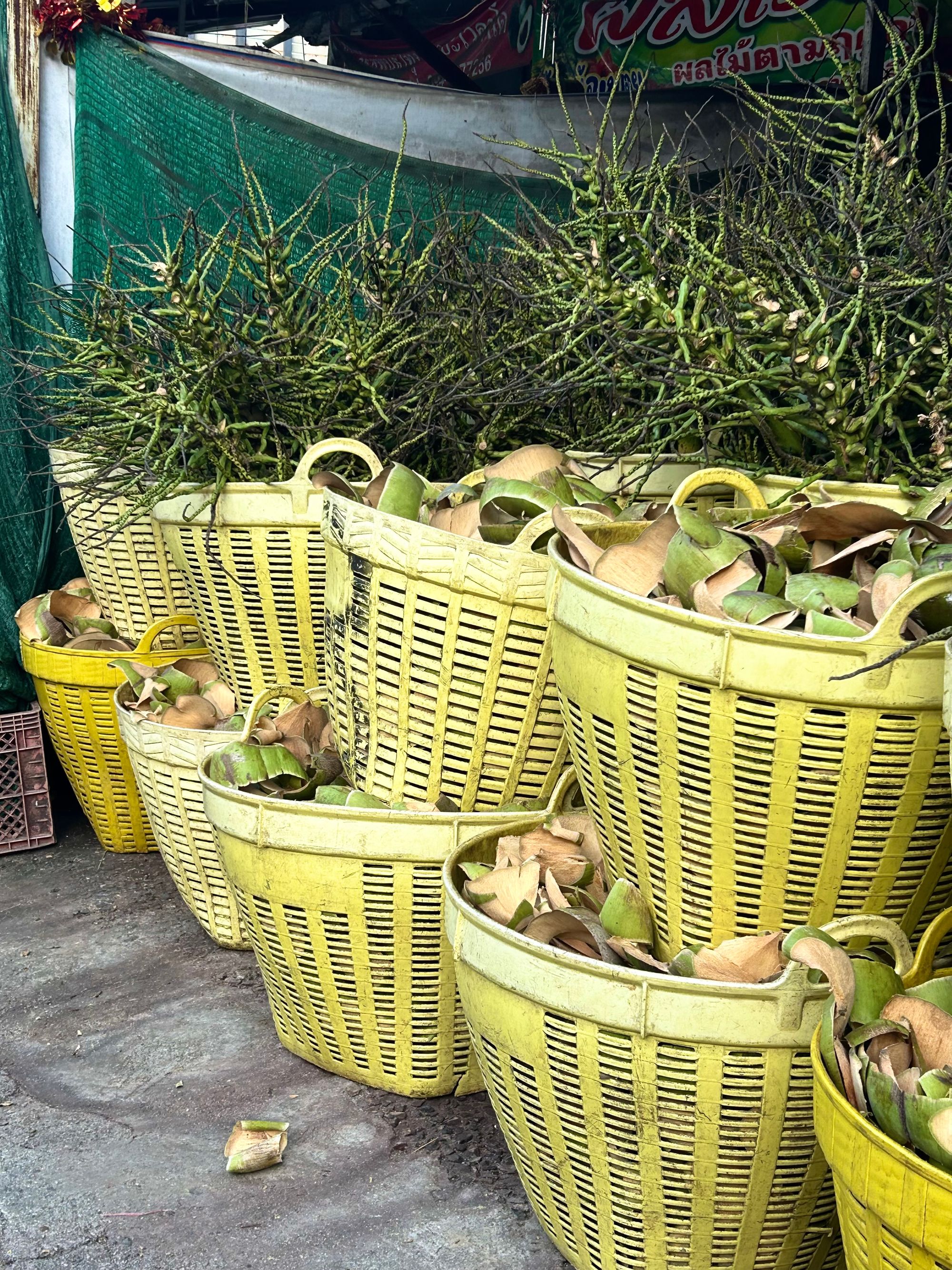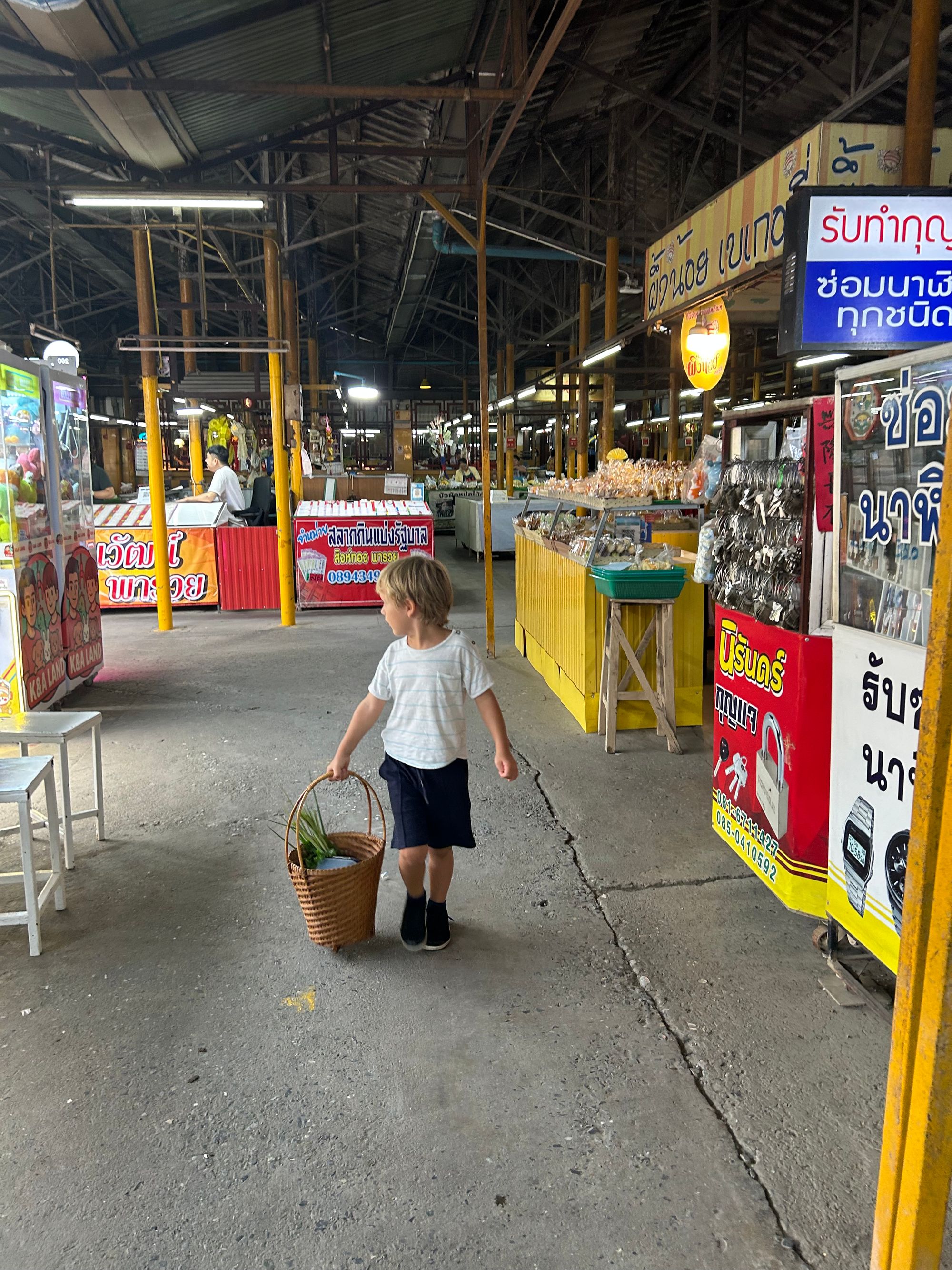 Karpo že lep čas kaže precej zanimanja za kuho in ker mu sama na tem področju žal težko pomagam, sem na spletu poiskala možnosti kuharskega tečaja tajske hrane in našla https://thaicookingchiangmai.com/kid-children-friendly-cooking-class-chiangmai/. Ob 9.00 zjutraj nas je prijazni Arm, domačin in profesionalni kuhar, pobral pred hotelom in nas najprej odpeljal na lokalno tržnico Sanpakhoi https://www.chiangmai-alacarte.com/blog/san-pakoy-market/, kjer smo nakupili meso, nariban kokos, zelenjavo, nekaj sadja idr. Nato smo se odpeljali v stanovanjsko sosesko, kjer Arm prebiva, del hiše pa je namenjen obisku malih in velikih kulinaričnih zanesenjakov. Na vrtu ima posajene vse vrste začimb, ki se uporabljajo v tajski kuhinji. Franu je najprej pripravil poparek iz limetine trave, nato pa smo s skupnimi močni pripravili