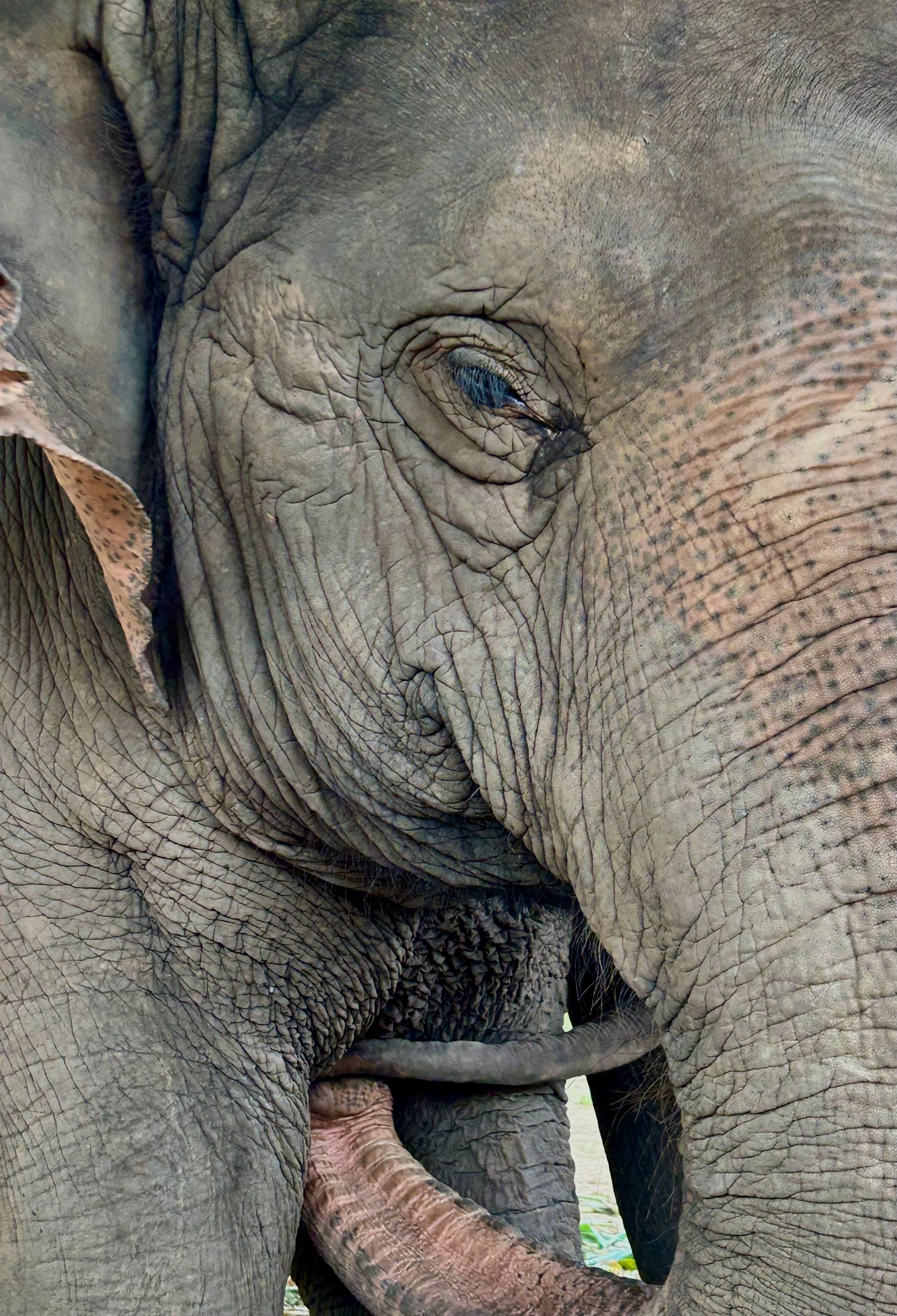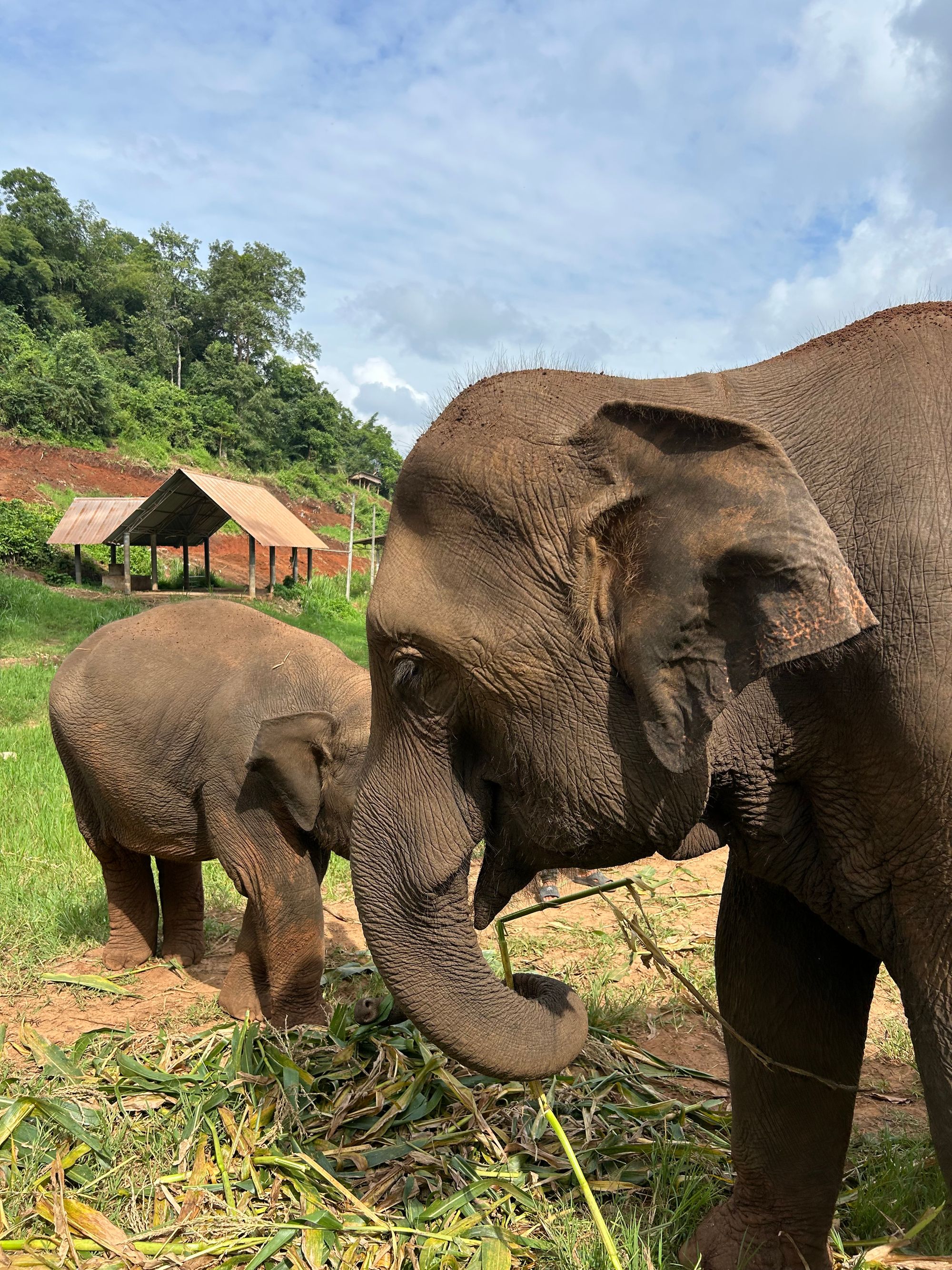 Ob prvem obisku Chiang Mai-a sem takrat vneto raziskovala možnosti doživetja slonov in ker sem sitna zagovornica živalske svobode, se takrat nisem odločila za obisk kakršnegakoli zavetišča. Tokrat sem precej dolgo raziskovala in se navsezadnje odločila, da bomo s fantoma obiskali zavetišče, o katerem se je na dolgo in široko, predvsem pa čustveno, pisalo o etičnem in moralnem ravnanju z živalmi. Ker nismo doživeli tega, kar sem pričakovala, linka ne bom objavila. Globoko v džungli Sri Lanna National Park smo se nekaj ur družili z rešenimi sloni, ki pa so 2x dnevno vpeti v obiske turistov, se premikajo od enega drevesa do drugega, jedo banane, sladkorni trs in koruzo, se kopajo v blatni luži, vsake toliko pa kakšnemu turistu za luštni posnetek snamejo tudi klobuk.