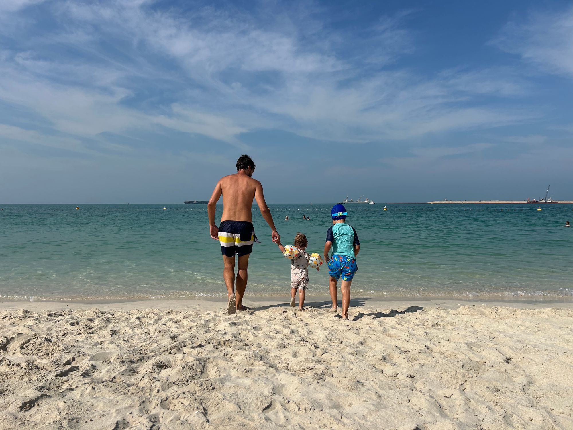 Kratka dva dneva v Dubaju sta iz mene ponovno izvabila logistično-načrtovalno pošast in tako smo se po zajtrku odpravili do Jumeriah Beach https://www.visitdubai.com/en/explore-dubai/dubai-neighbourhoods/jumeirah, ene najbolj priljubljenih plaž v Dubaju, ki se nahaja tik ob soseski Jumeriah – idealne za ljubitelje sonca, gurmane in športne navdušence. Po poti smo opazovali resnično impresivne mošeje in neverjetno prostorsko razporeditev modernega Dubaja. Ulice so široke, mesto diha, vsak detajl je premišljen, celo Uber te vozi okrog s Teslami. Čeprav najpogosteje slišimo, da je Dubaj pretirano turističen, nima zgodovine idr. in četudi to do neke mere drži, je mesto resnično dokaz kaj vse se da narediti z dobrim prostorskim planom, nekaj denarja in dosti volje.
