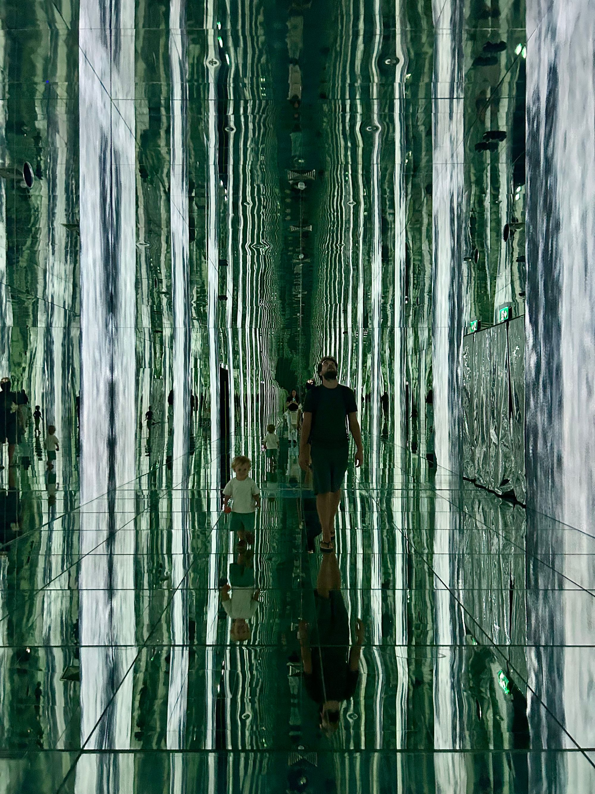 Zadnji dan v Dubaju smo imeli splaniran intenzivno, vendar nismo uspeli nakupiti niti začimb, ker smo se več ur zadržali v Dubai Mall https://thedubaimall.com/, impresivni veleblagovnici, ki ponuja vse od drsališča, megalomanske igralnice za otroke, ki ponuja celo simulator letenja, predela z raznovrstno hrano (po štirih mesecih rezancev in riža smo si privoščili bosanske čevape in predrzni podvig drago plačali naslednji dan:)) in nam najljubšega interaktivnega Art Museum https://dubai.artemuseum.com/. Vrhunsko doživetje, ki ponuja celo izkušnjo t.i. žive skicirke, kjer otroci barvajo risbe, ki nato oživijo v zgodbah na platnu.