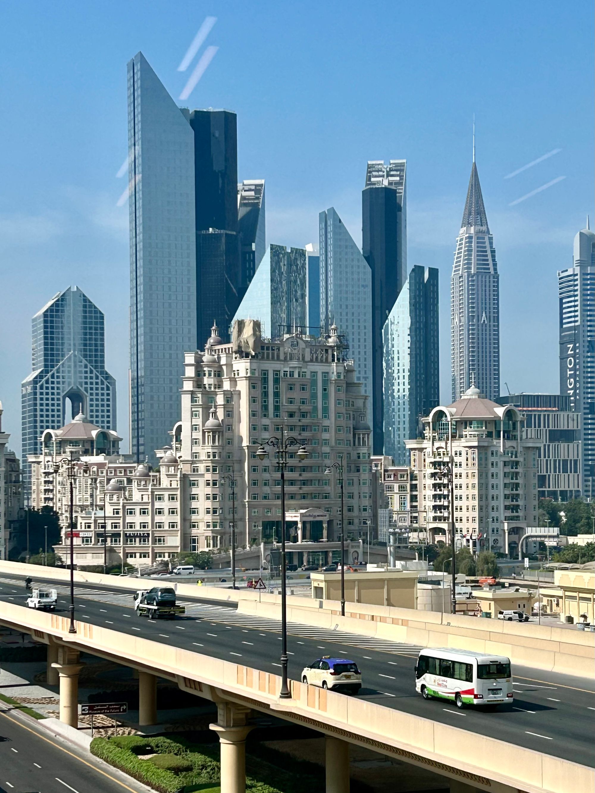 Dubaj je megalomanski in do pulta za immigration smo morali celo na vlak. Prejeli smo SIM, ki omogoča brezplačen internet 24 ur, falcon eye nas je poskeniral, zamenjali smo preostale rupije v dirhame in se prikomolčkali do mestnega taksija. Bivali smo v hotelu blizu letališča, izbranega strateško zaradi kratkega postanka, Copthorne Hotel Dubai https://copthorne-hotel-dubai.h-rez.com/. Receptorju sva se, spričo divjanja otrok po avli, zasmilila in tako smo dobili suito namesto sobe.